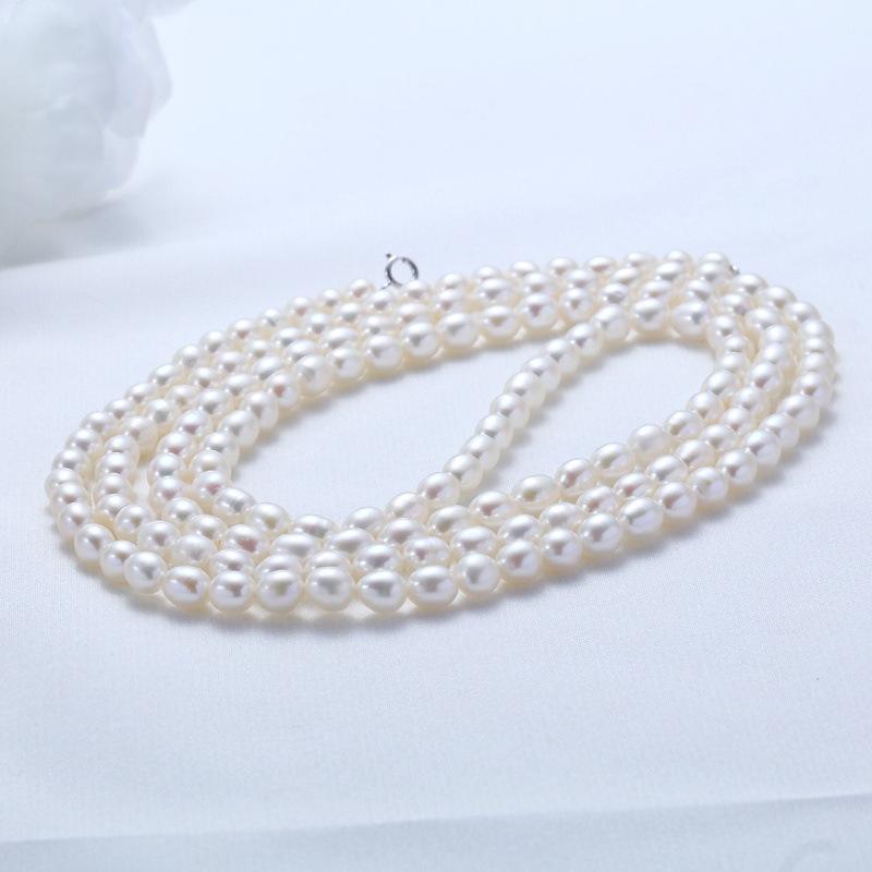 Women's Long White Freshwater Pearl Necklace Quality 5mm Wrapped in 2 Circles Slight Imperfections Featuring Chic Sweater Chain