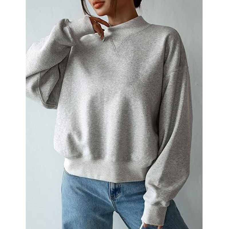 Women's Loose Sweatshirt Fleece Sweater Custom Embroidered Drop Shoulder Cropped Mock Neck Sweatshirt for Women
