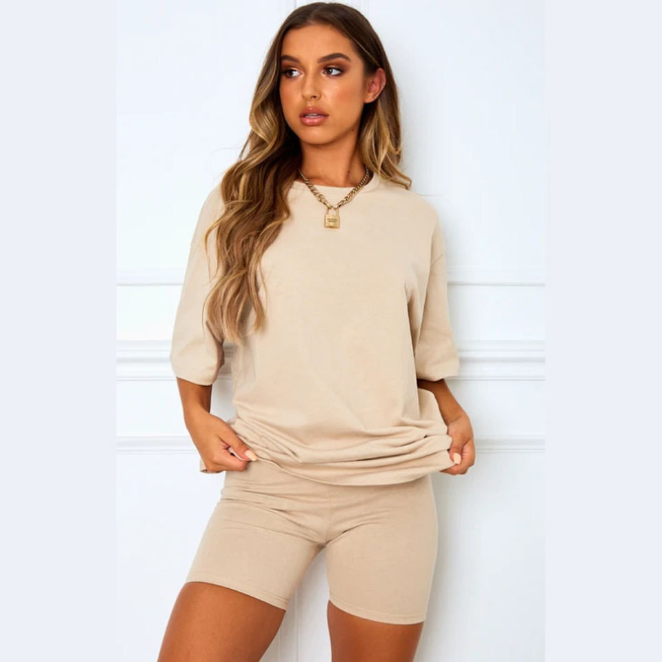 Women's Low MOQ Two-Piece Knee Loungewear Set Short Sleeve Crop Top Shorts Custom Logo Solid Pattern Summer Pajamas Waterproof