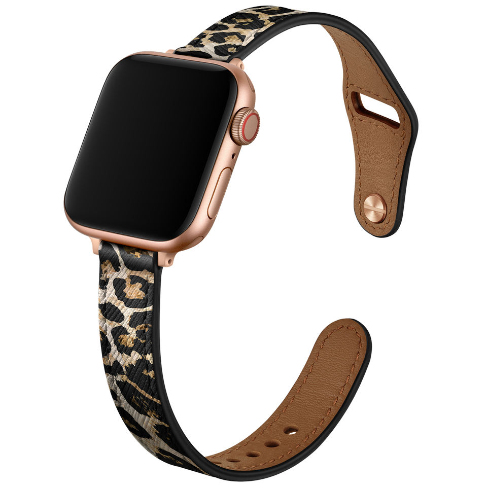 Women's Luxury 16mm Smartwatch Strap Moon Buckle Starlight Leopard Style Comfortable Gold Orange Breathable Leather for Apple