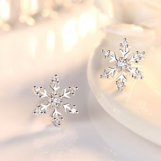 Women's Luxury 925 Silver Micro-Inlaid Snowflake Earrings Elegant Korean Style Fine Dangle Dangle for Personal Use