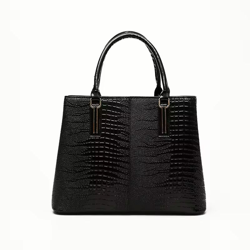 Women's Luxury Full Grain Leather Tote Bag Vintage Lizard Design Shoulder Bag with Zipper Closure Waterproof