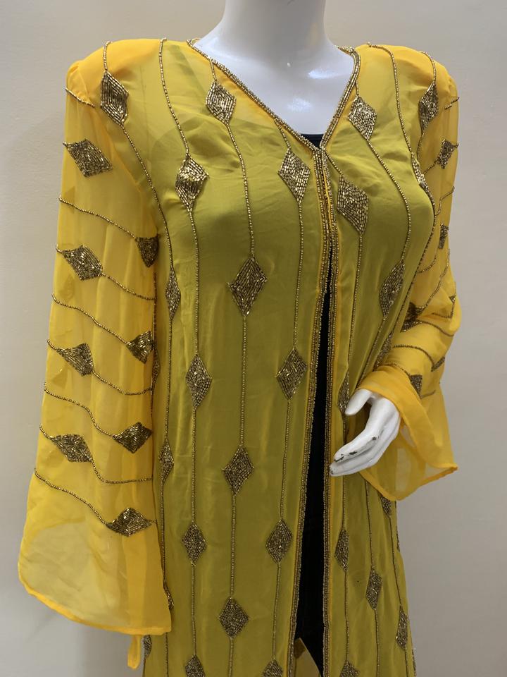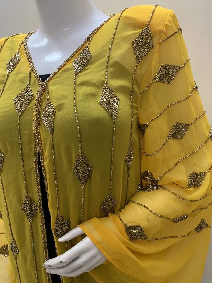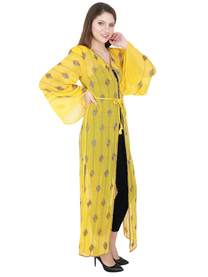 Women's Luxury Handcrafted Plus Size Abaya Kaftan Arabian Style Long Front Open Georgette Elegant Modest Party Wear Dress