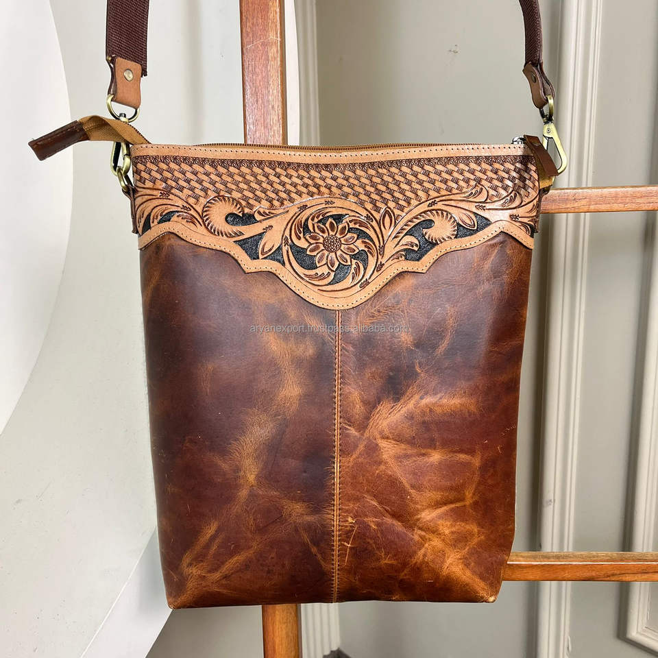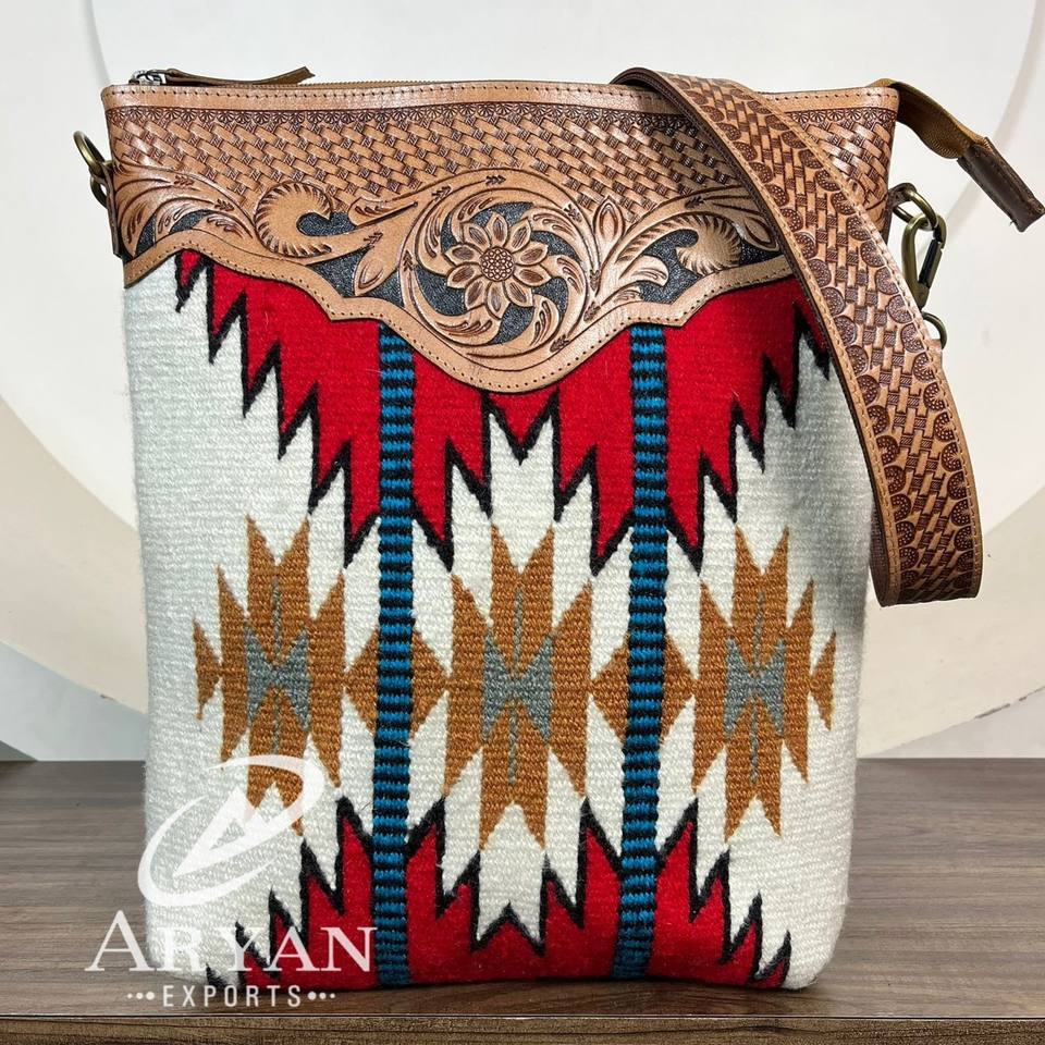 Product name:Hand Tooled Leather Saddle Blanket Crossbody Bag