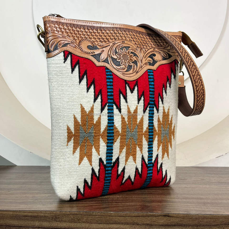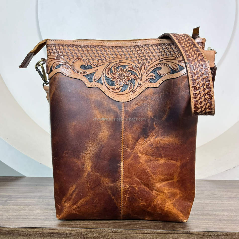 Product name:Hand Tooled Cowhide Leather Fringe Crossbody Bag