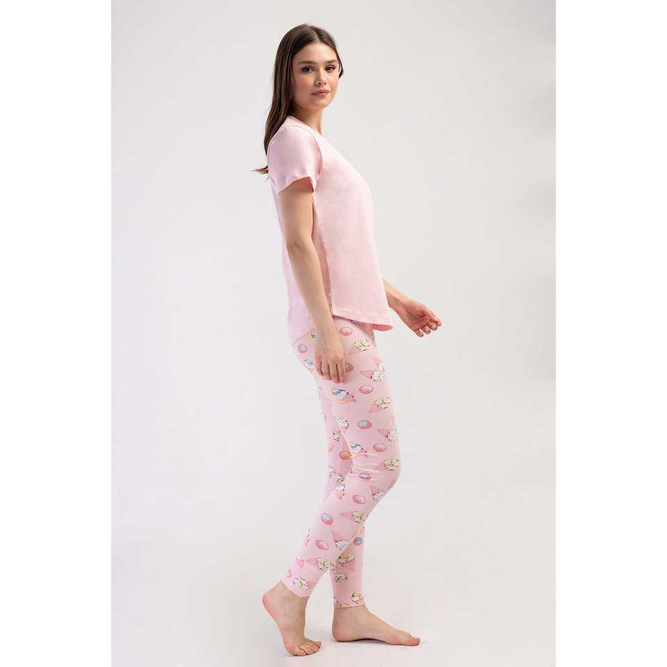 Women's Lyocell Supreme O-Neck Short Sleeve Skirt with Oval Cuff Tights Set Sleepwear