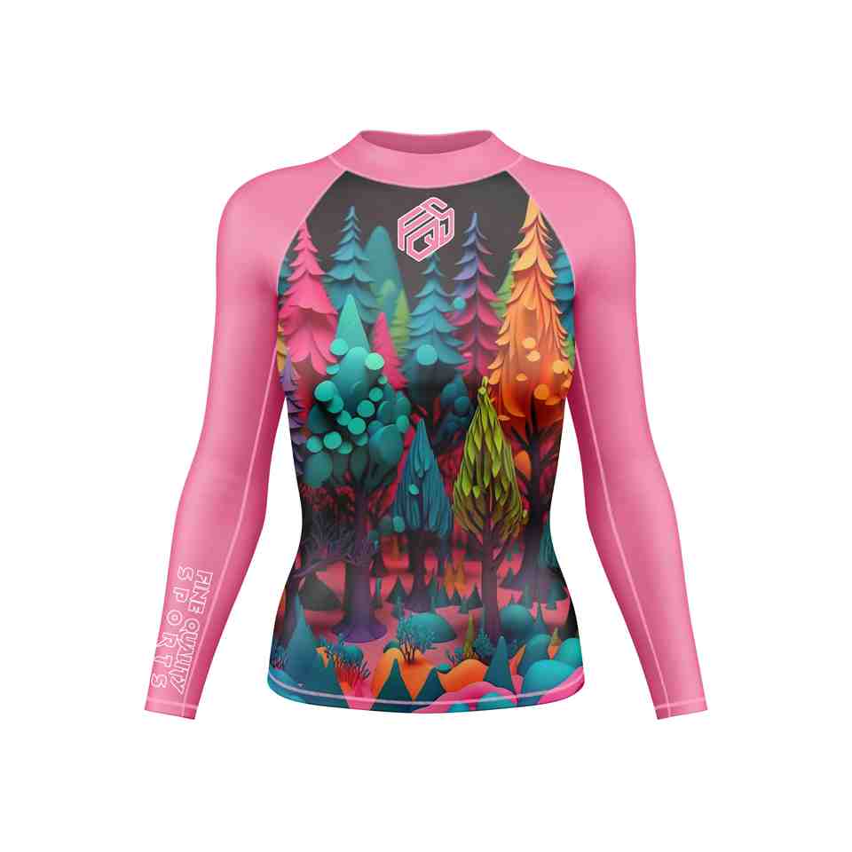 Women's MMA Long Sleeve Rash Guard Compression Shirt for Jiu Jitsu BJJ Grappling Front Full Sublimation Dye Breathable