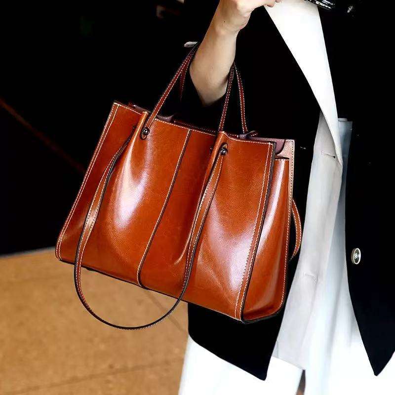 Women's Medium Size Corium Casual Tote Shoulder Bag Chains Decoration Zipper Closure Waterproof Polyester A4 Format
