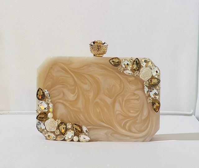 Women's Messenger Resin Metal Clutch Bag Evening Hand Bags Ladies Wedding Bridal Clutch Luxury Metal Purse Frame Clutch Bags
