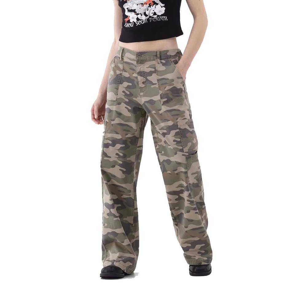 Women's Mid Casual Cargo Sweatpants Loose Fit Summer Jeans Style Camouflage Stacked Pattern Colored Pocket Cotton Fabric