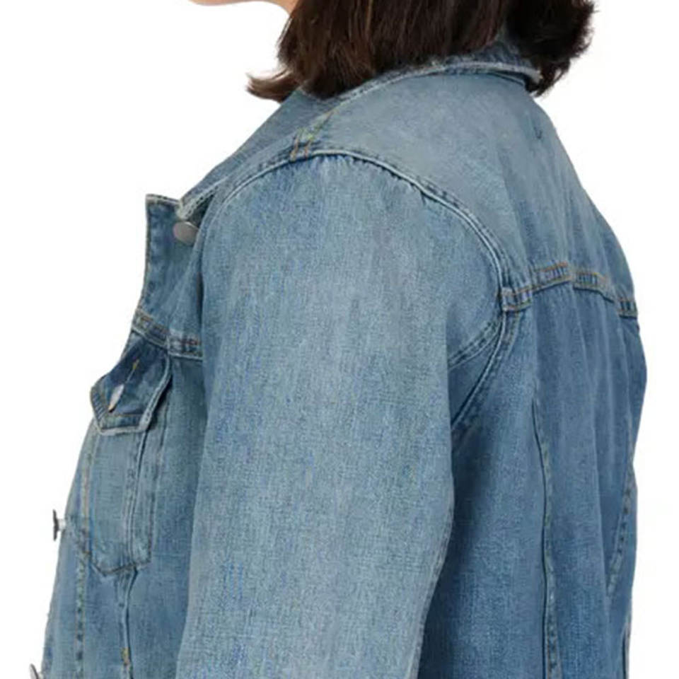 Women's Mid-Length Cotton Denim Jackets Custom Printed Logo Button Decoration Solid Raw Wholesale Price for Winter Bulk Quantity