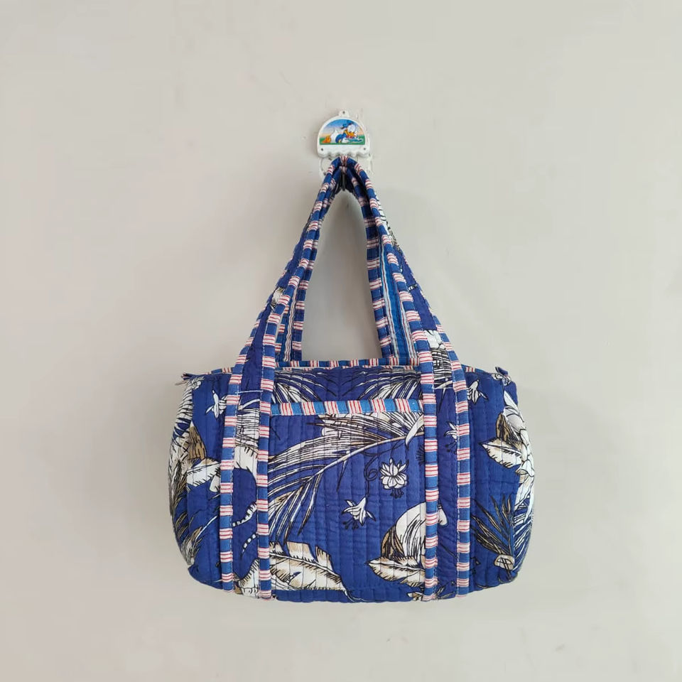 Women's Mini Duffel Handbag Cotton Fabric Zipper Closure Hand-Carry Fashion Lady Style Floral Design Compact Size