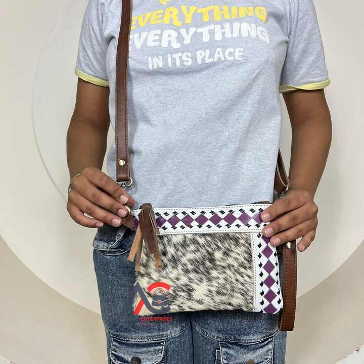 Hand Tooled Cowhide Checkered Fashionable Crossbody Bag