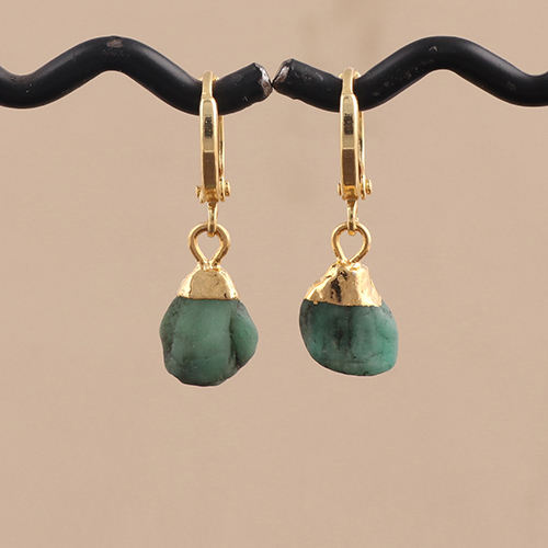 Women's Minimalist Gold Electroplated Birthstone Earrings Handcrafted Raw Emerald May Wholesale Fashion Hoop Earings Supply