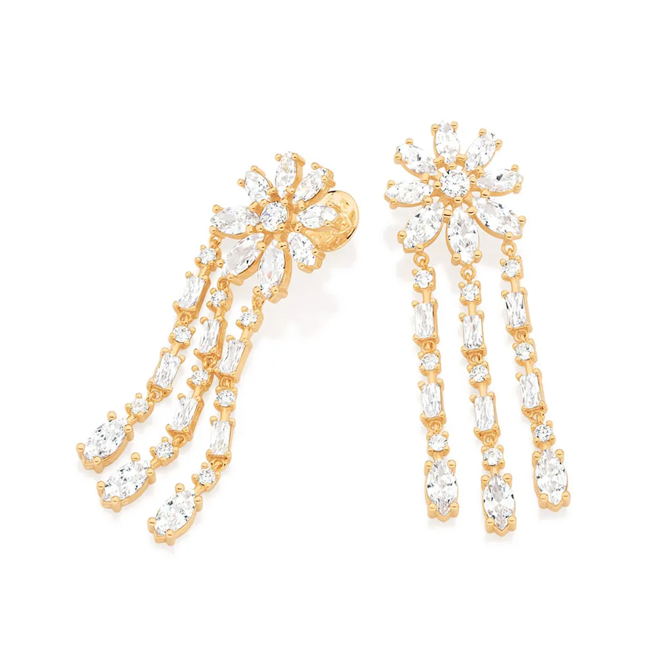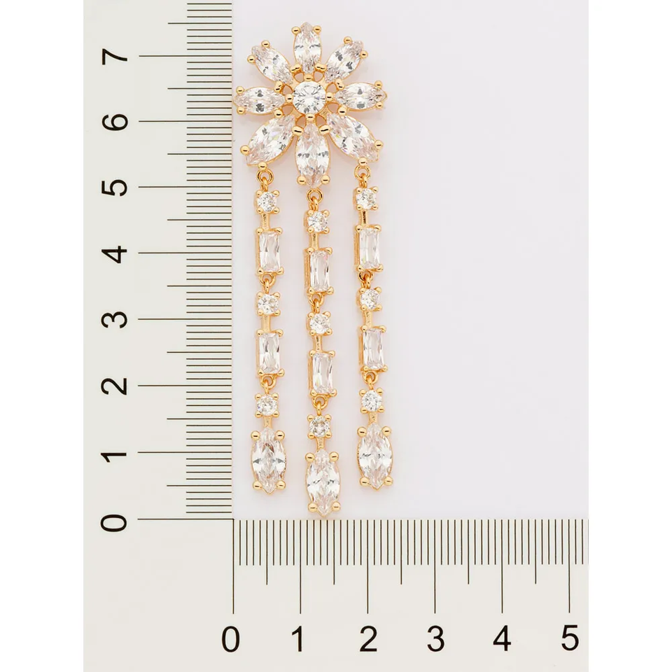 Women's Trendy 18K Gold Plated Sapphire Chandelier Earrings Handmade Iced Wedding Party Fashion Tin Alloy IGI Certified