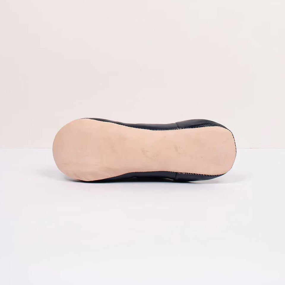 Women's Moroccan Leather Babouche Shoe Home Slippers Dark Navy Blue Color Indoor Slippers