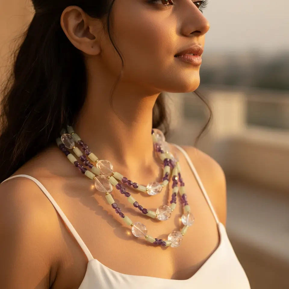 Women's Multi-Strand Amethyst & Quartz Crystal Necklace