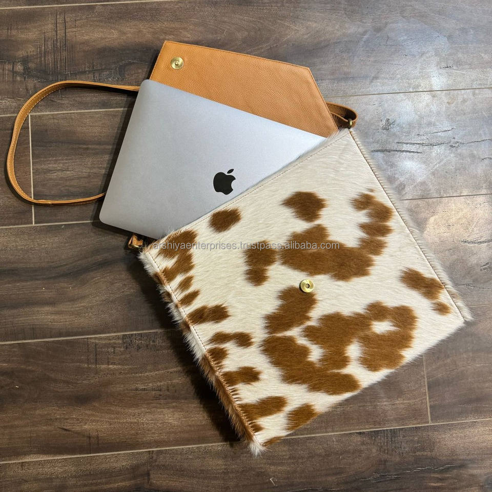 Women's Multi-function Magnetic Hand Tooled Leather Crossbody Laptop Sleeve Case for MacBook Luxury Cowhide Envelope Laptop Bags