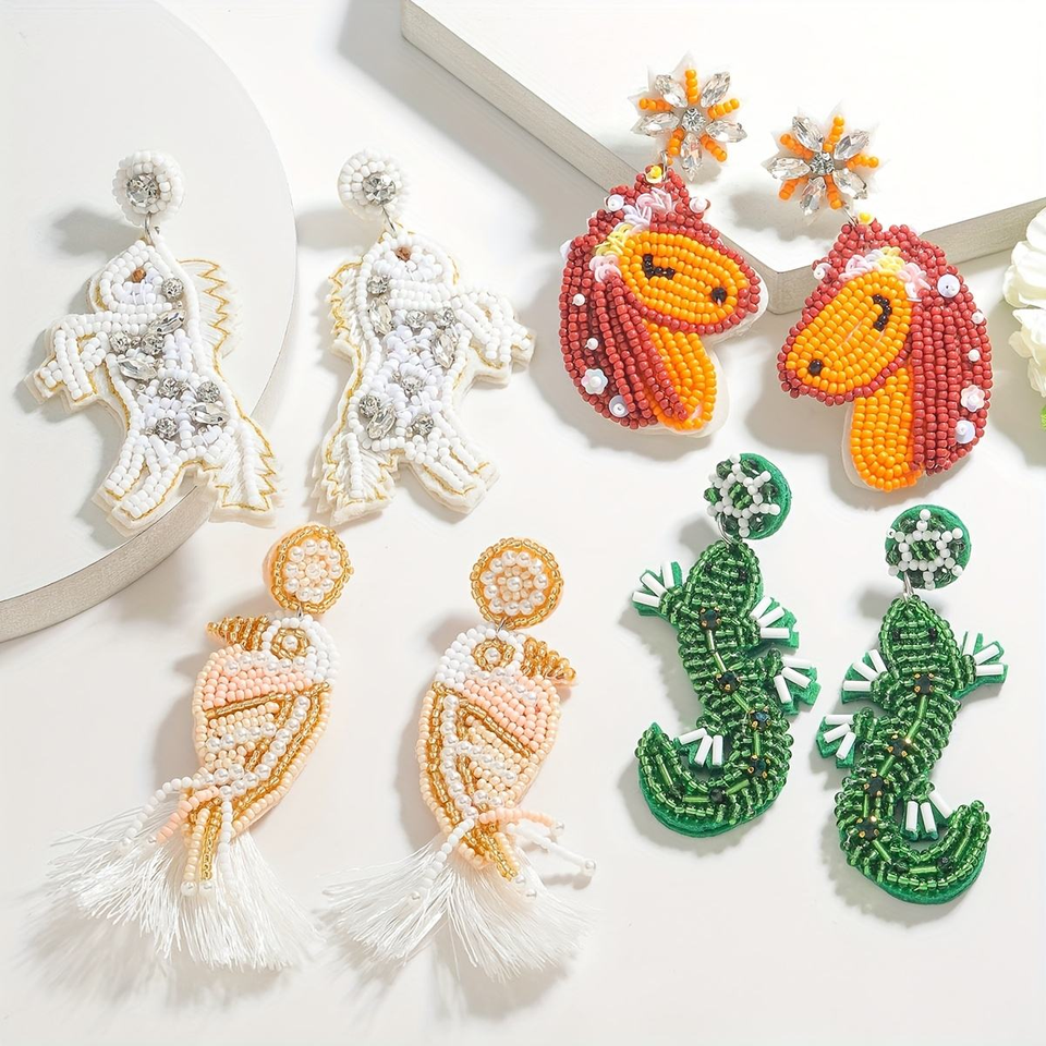 Women's Multicolor Bohemian Dangle Earrings Handmade Seed Beads and Tassel Designs with Animal Motif by MD HANDICRAFTS