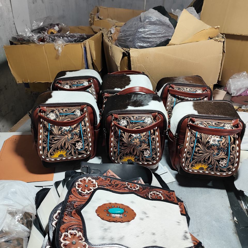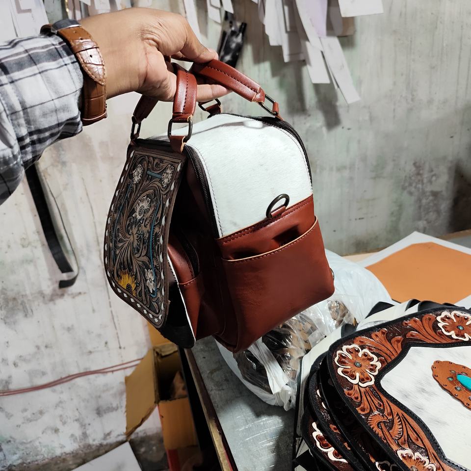Women's Natural Cowhide Leather Hand Tooled Western Backpack Bag Autumn Concealed Carry Bags Tassel Flower Decorations