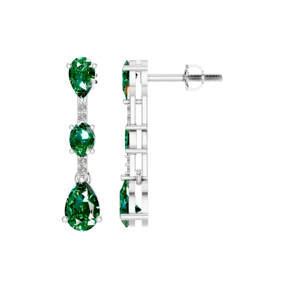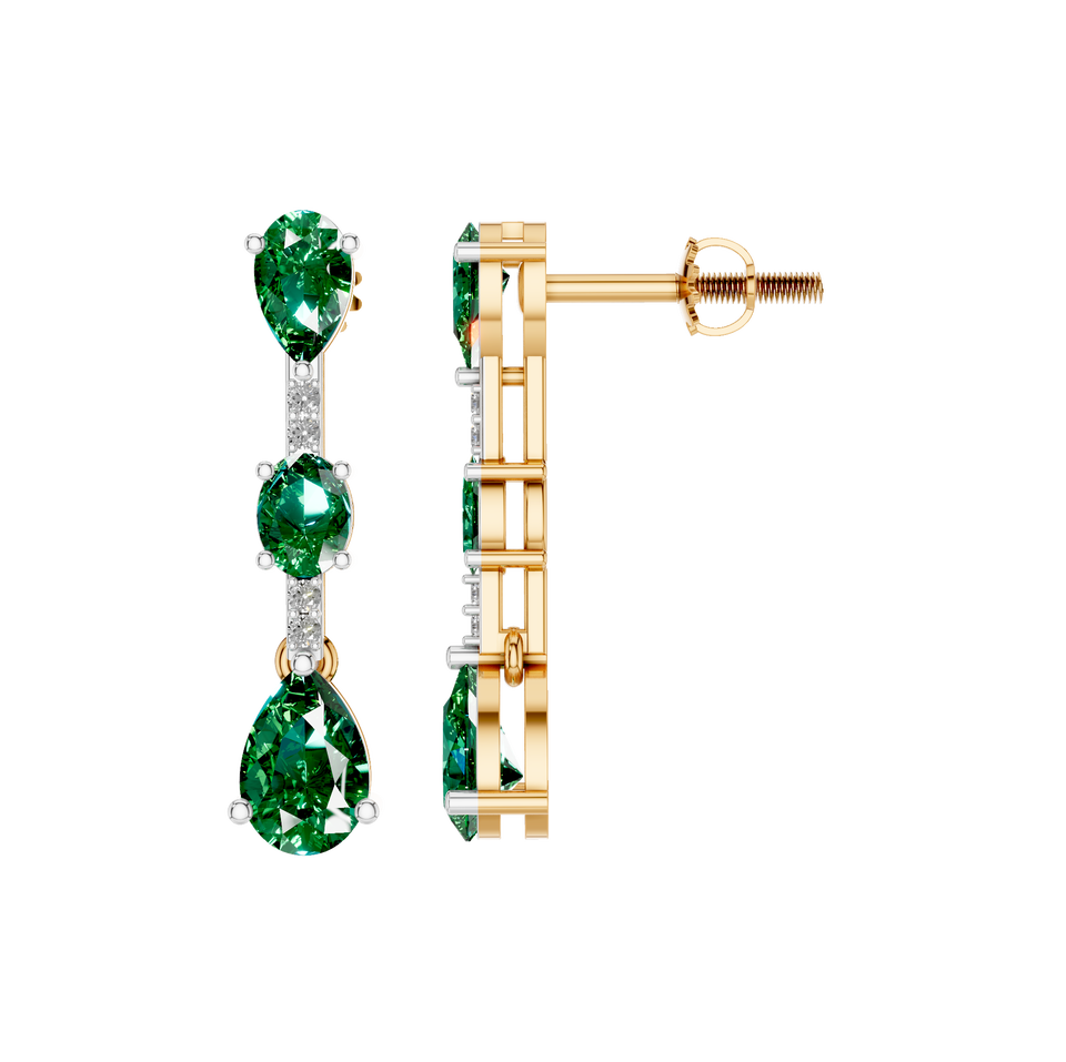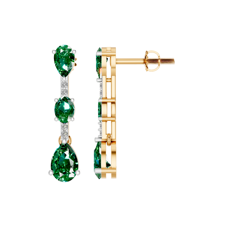 Women's Natural Emerald Statement Earrings 14k/18k Solid Gold Pear Oval Shaped Green Gemstone Long Drop Design IGI Diamond