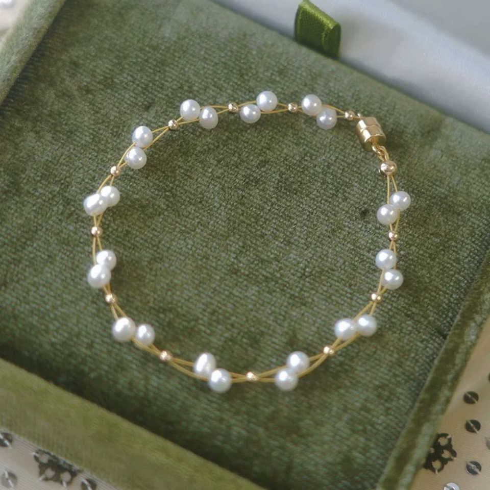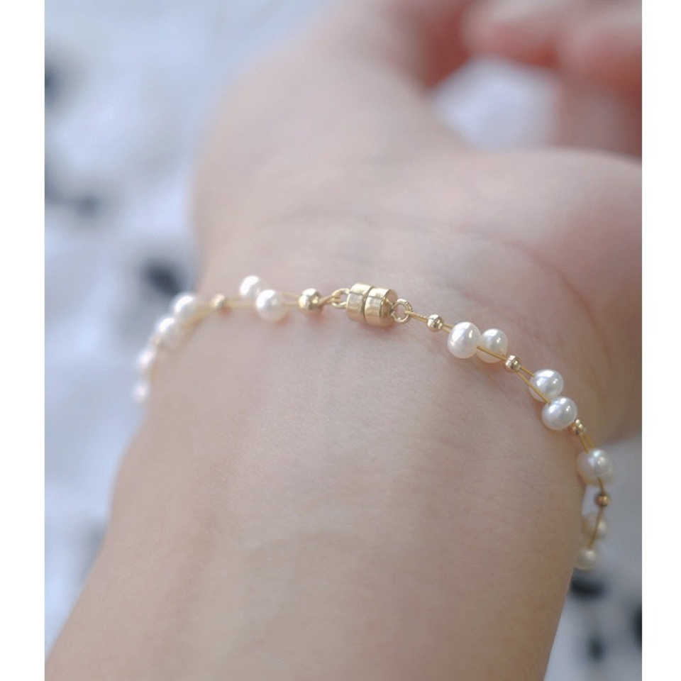 WENCHI Women's Natural Freshwater Pearl 14K Gold 30g Bracelet with Iron Buckle Lace Elegant Pearl Bangles