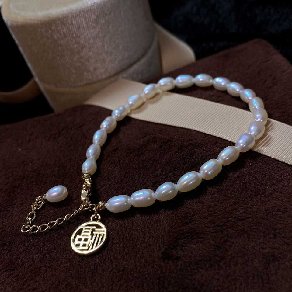 Women's Natural Freshwater Pearl Bracelet with 14K Gold Finish Small Rice Grain 2mm-3mm Size Jewelry
