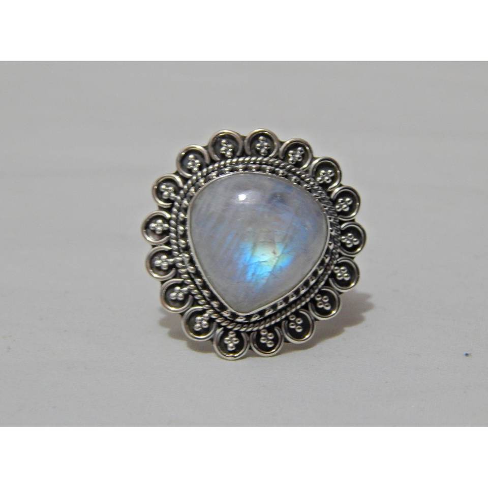 Women's Natural Moonstone Ring Smooth Cut Sterling Silver Best Birthday Gift for Friend Rainbow Moonstone R0269-GS