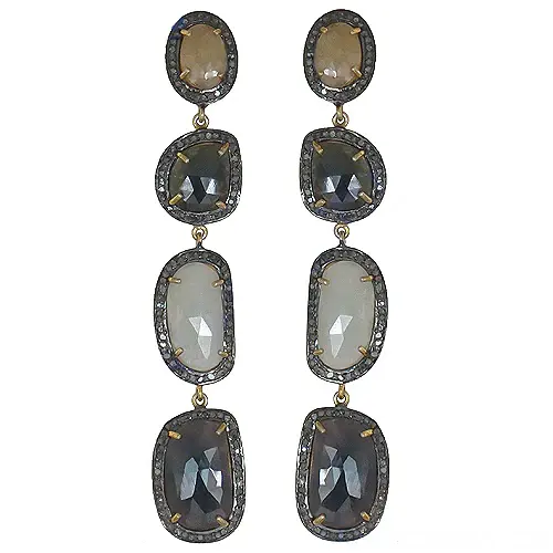 Women's Natural Stone Gemstone Dangle Earrings Trendy Cross-Shape Pendant Drop Earrings Freshwater Pearl Religious Style