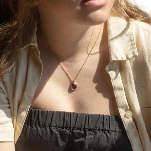 Women's Necklace Natural Black Onyx Gemstone December Birth Minimal Wedding Handmade Jewelry 925 Sterling Silver Chain Necklace