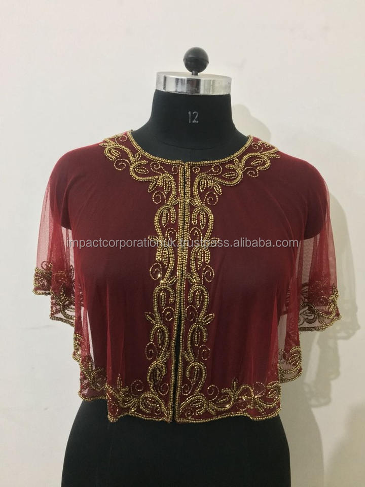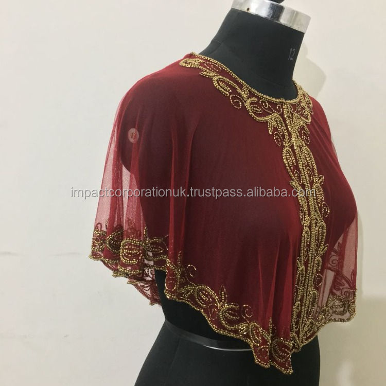Women's Net Embroidered Fabric Short Poncho Shrug Top Embroidery Designs With Gold Bead Work Plus Size Fit Most Bulk Price Offer