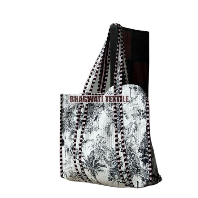 Women's New Boho Large Casual Tote Bag Floral Printed Eco-Friendly Quilted Cotton Hand Block Printed Zipper Fabric Two