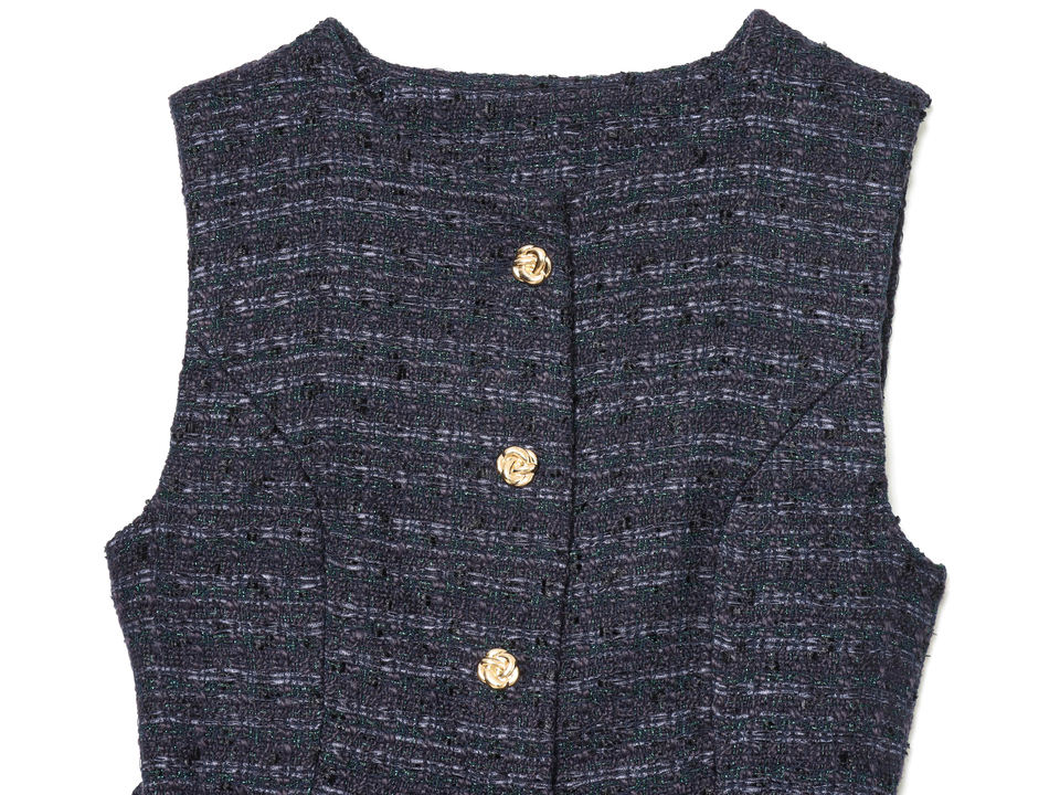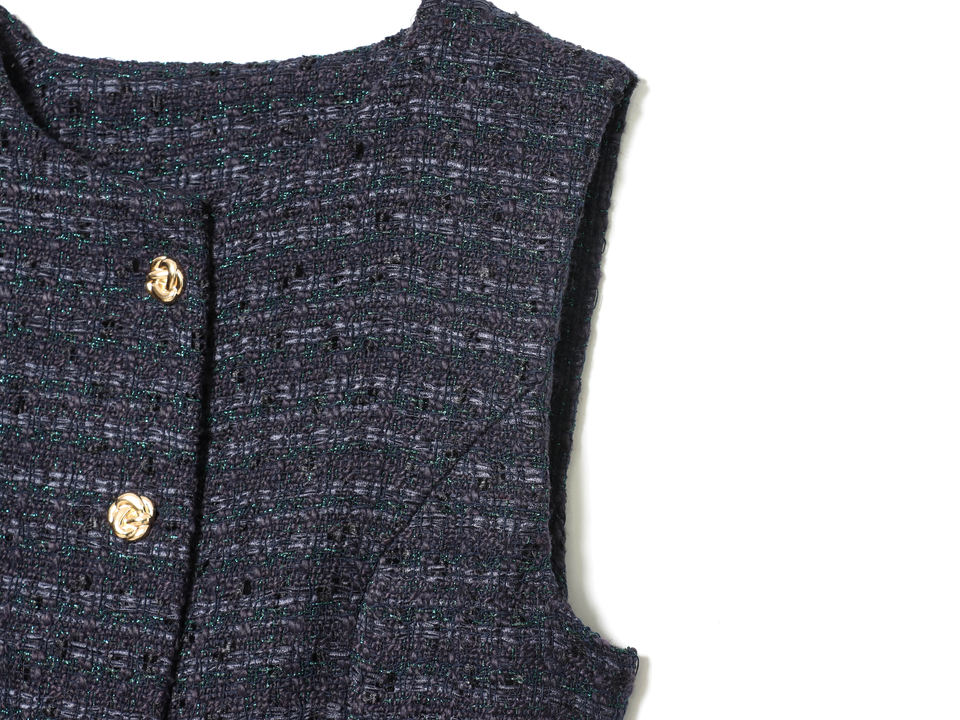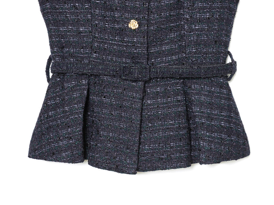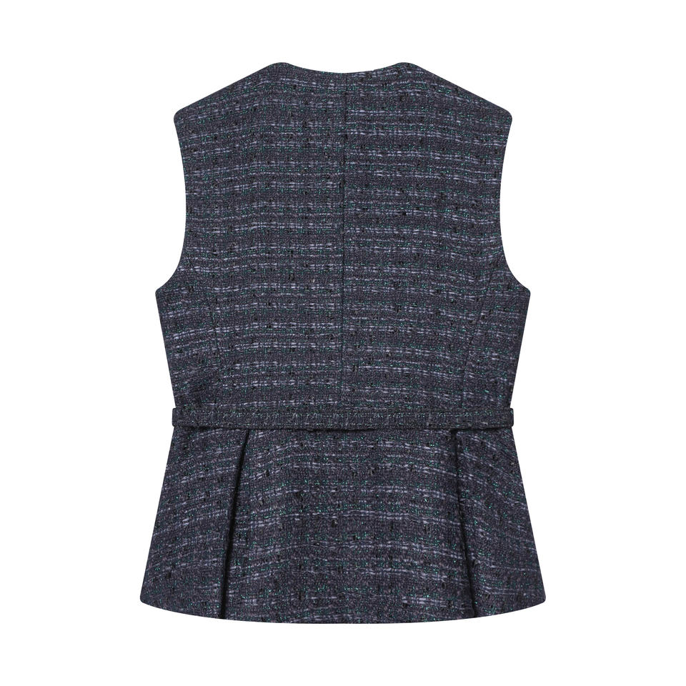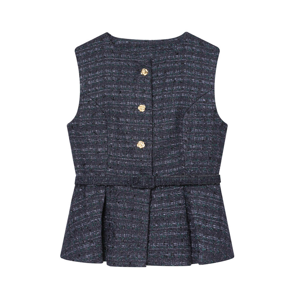 Women's New Chic Fashion Metal Buckles Crew Neck Sashes Customized Color Casual Breathable Windproof Tweed Vest Waistcoat Suits