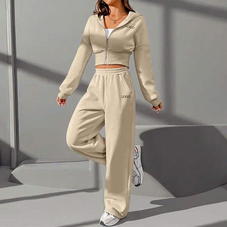 Women's New Fashion Breathable Cotton Gym Sport Tracksuit Workout Fitness Apparel with Hoodie and Trousers in Sized Track Suits