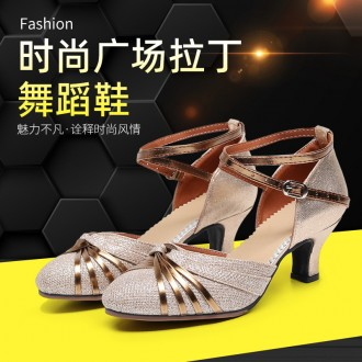 Women's New Glitter Latin Dance Shoes with Low Mid Heel Soft Performance Wear