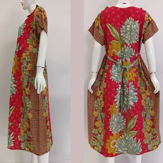 Women's New Summer Short Nightgown Knee-Length with Front Zipper and Back Strap Soft Elastic Waist Chibi Style