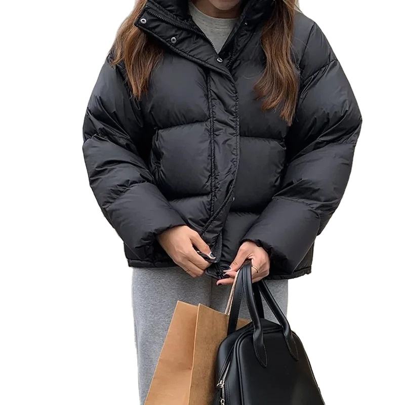 Women's New Winter Warm Thick Cotton Padded Coat Simple Stand Collar Puffer Bomber Jacket Nylon Lining Breathable Solid Print