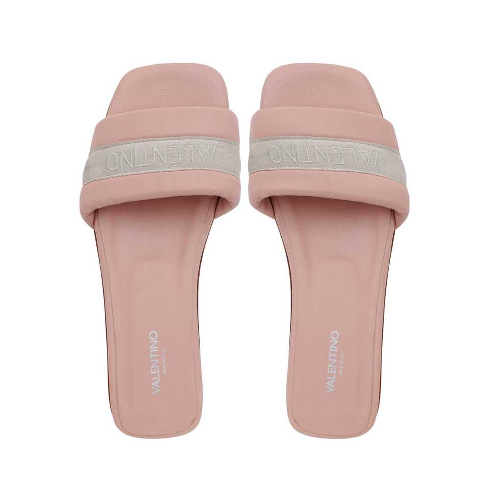 Women's Nude Nappa and Fabric Upper Low Sole Elegant Flats Sliders