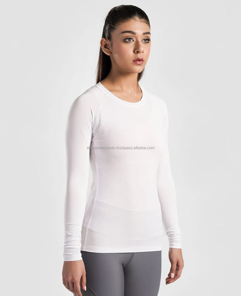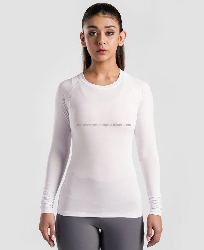Women's O Neck Compression Fitness Shirt Breathable Quick Dry Eco-Friendly Cotton Spandex Fabric Gym-Wear Heat-Transfer Printing