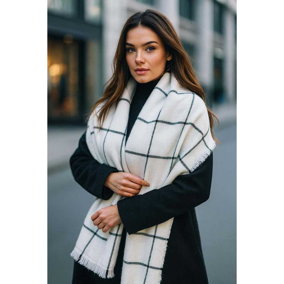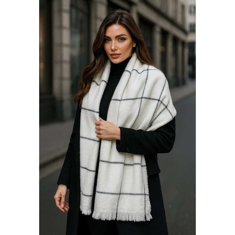 Women's Off-White 70x180 cm Square Patterned Shawl Custom Ethnic Style Polyester Scarf-SAL1210