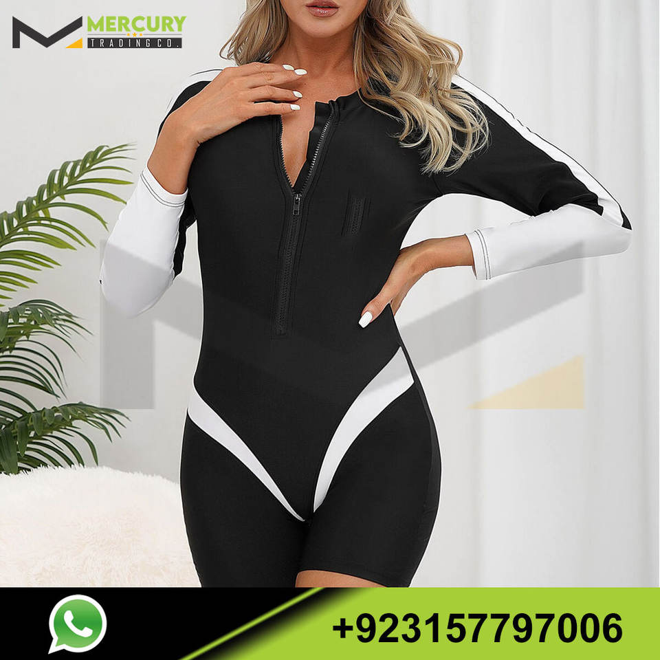 Women's One Piece Swim Jumpsuits Zipper Swimwear Boyleg Rash Guard Bathing Suit Comfortable Wear UV Protection