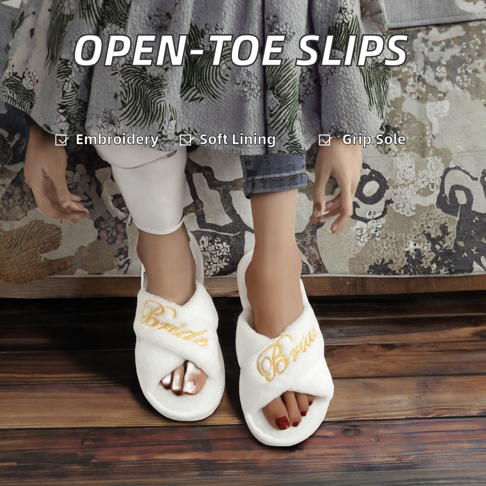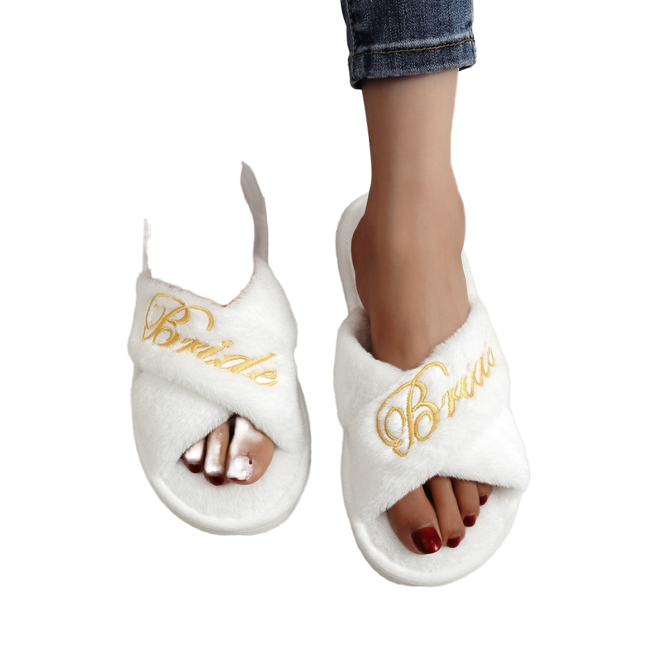 Women's Open-Toe Indoor for Slippers Non-Slip EVA Outsole Embroidered Spring Autumn Cross-Border Fur Popular Home Use Design for