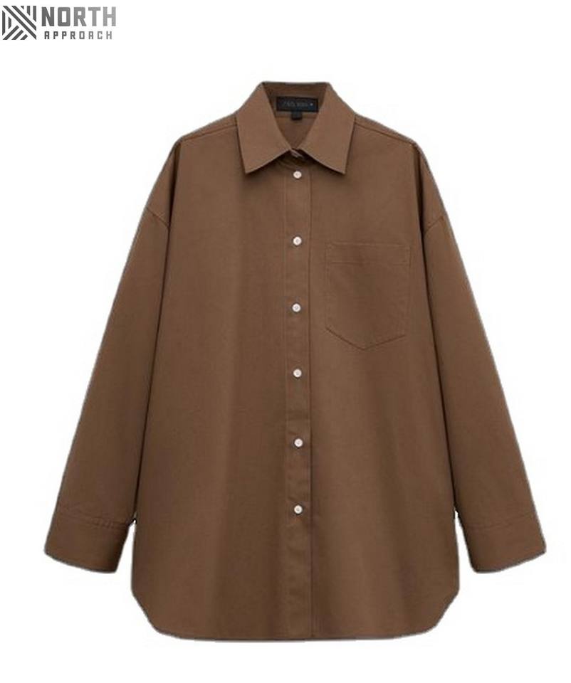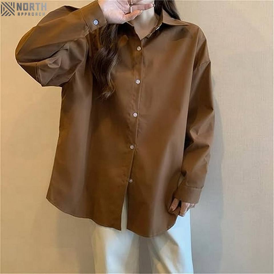 Women's Oversize Casual Shirts Long Sleeve Office Tunic Blouses Single-Breasted Design Comfortable Stylish Solid Pattern 280gsm