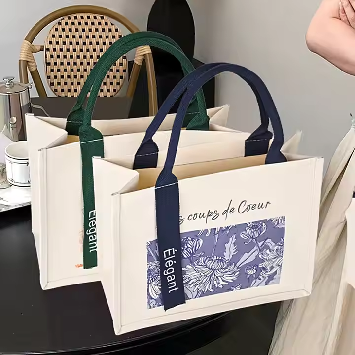 Medium Size 135 g/m2 Cotton Polyester Tote Bag Custom Letter Heat Transfer Zipper Closure for Daily Use Advertising Gift Purpose
