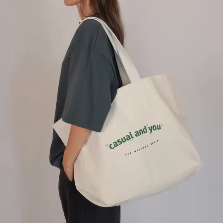 Recyclable Eco-Friendly Cotton Tote Bag Long Handle Medium Size Fabric Screen Printing Letter Pattern for Daily Use Advertising