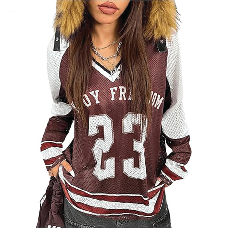 Women's Oversized American Football Jersey Mesh Burgundy 23 Print Enjoy Freedom Streetwear V-Neck Breathable Custom Logo Top