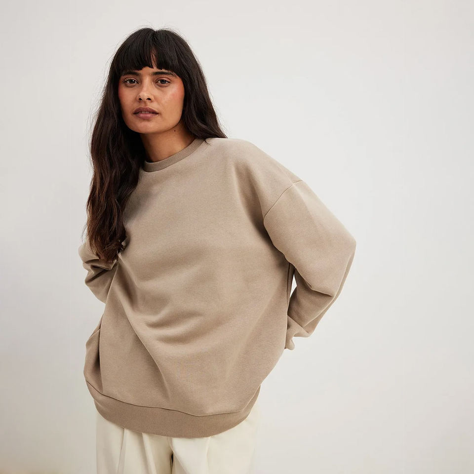 Women's Oversized Drop Shoulder Sweatshirt 100% Cotton Plain Baggy Women's Sweatshirt Streetwear Casual Fashion Crewneck Top
