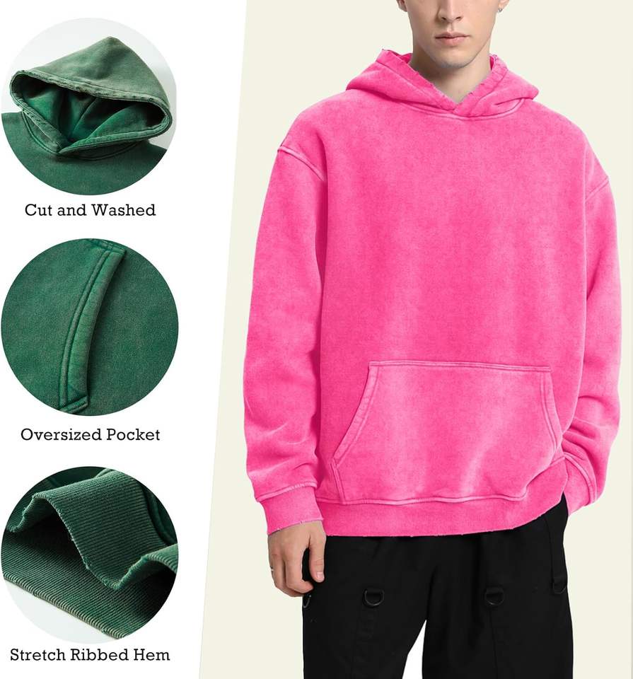 Women's Oversized Hoodie Heavyweight Cotton Fleece with Acid Wash Vintage Design Breathable Sustainable Puff Printing Logo Back