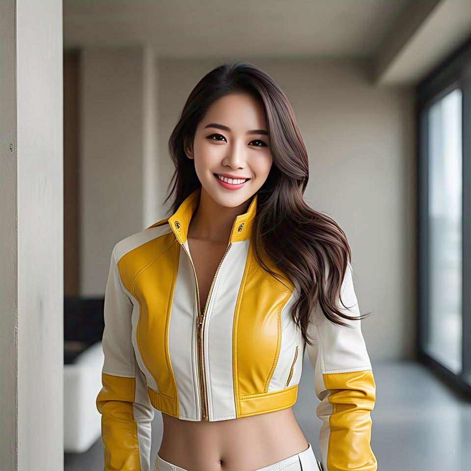 Women's PU Leather Zip-up Biker Jacket Autumn and Winter Motorcycle Outerwear with Cropped Design Knitted Processing