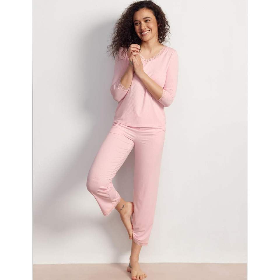 Women's Pajamas Set Soft V Neck 3/4 Sleeve Top Cropped Pants 2 Piece Sleepwear Women Sleepwear Lounge Sets Bulk Pajamas
